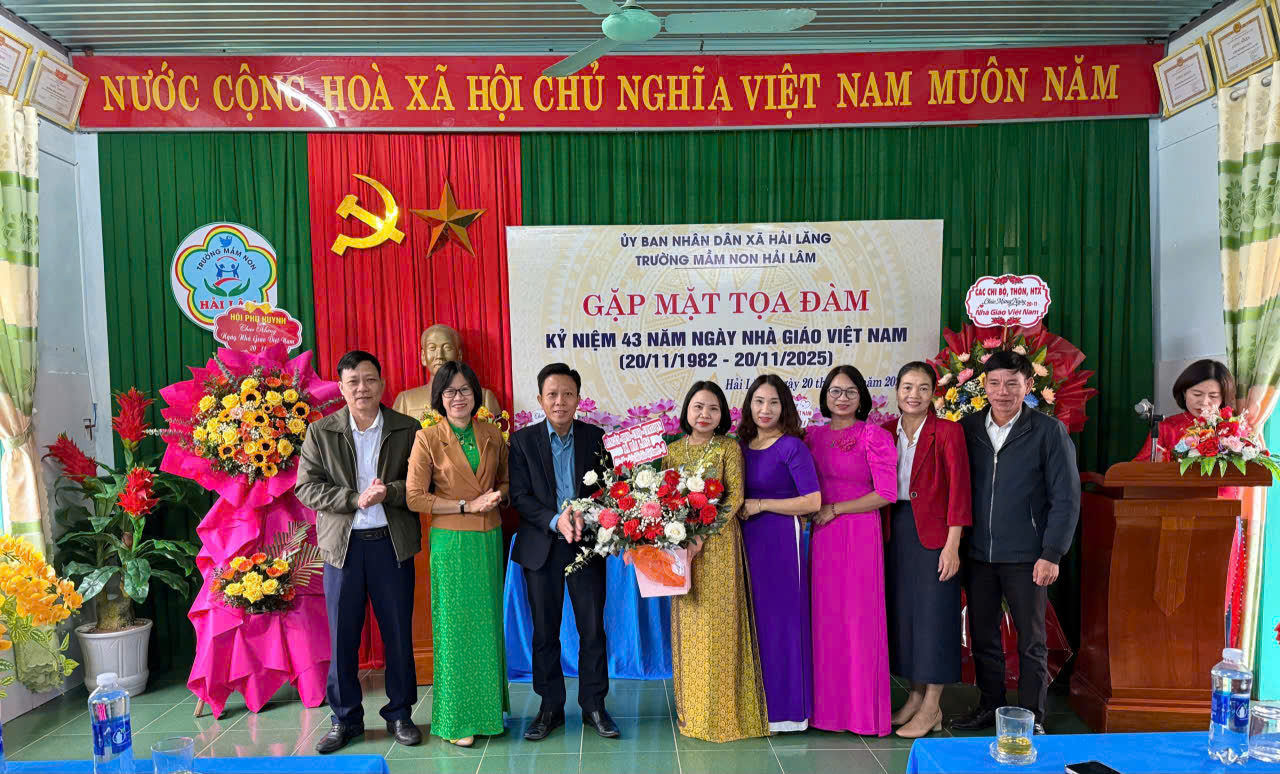 Nhân dịp Kỷ niệm 43 năm ngày Nhà giáo Việt Nam (20/11/1982-20/11/2025), chiều ngày 19/11/2025, Đảng uỷ, Hội đồng nhân dân, Ủy ban nhân dân, Ủy ban MTTQ xã Hải Lăng đã thành lập các đoàn công tác đến tặng hoa, chúc mừng cán bộ, giáo viên 06 trường học trên địa bàn xã.