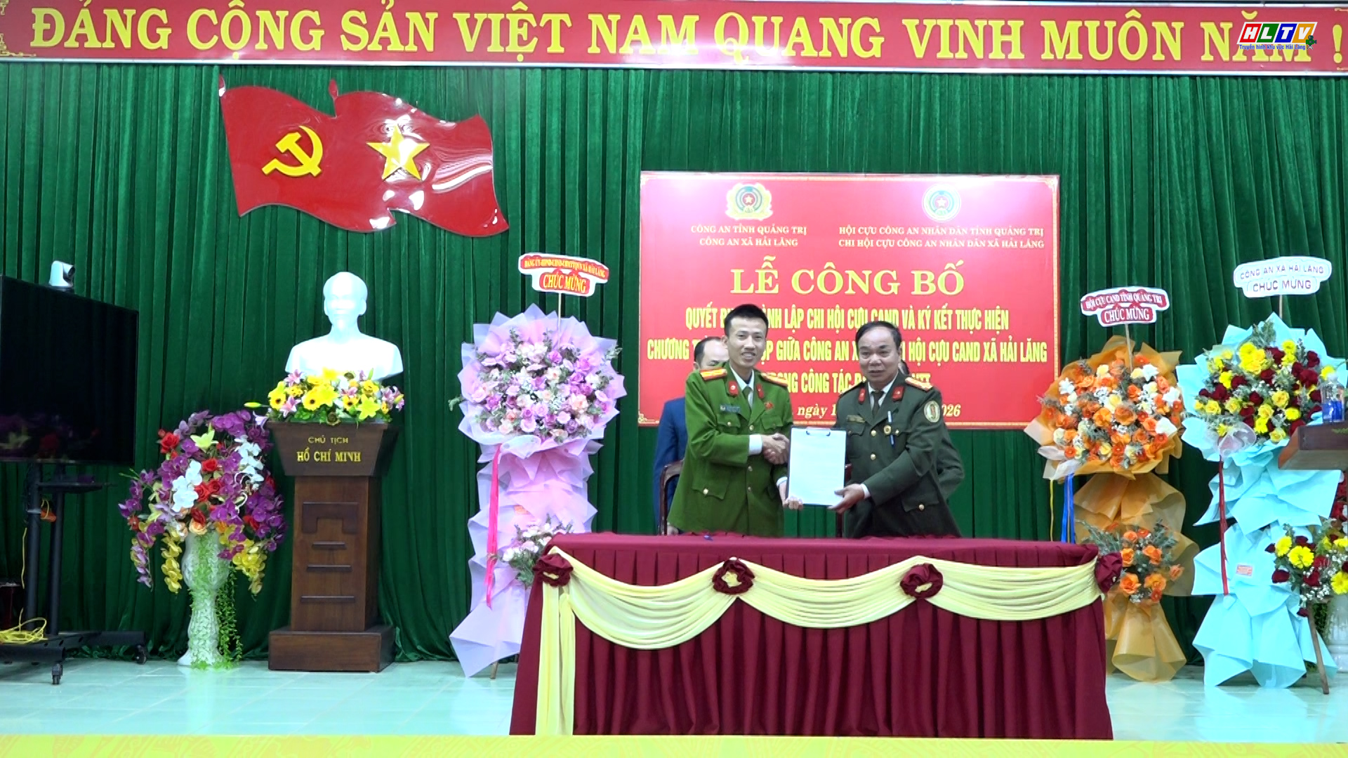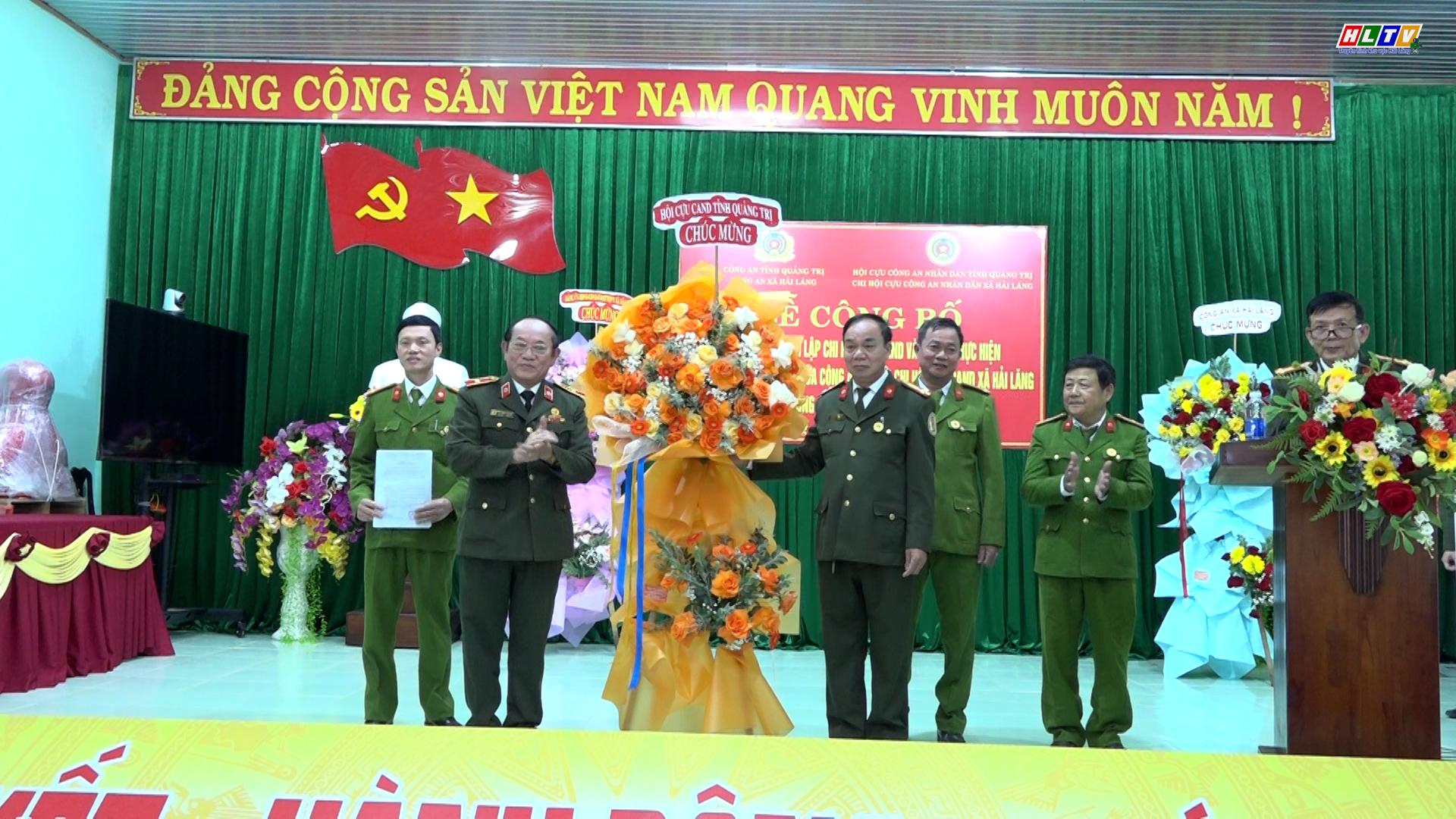 Ngày 10/01/2026, Công an xã Hải Lăng phối hợp với Chi hội Cựu CAND xã Hải Lăng lọng trọng tổ chức lễ công bố quyết định thành lập Chi hội Cựu CAND xã và ký kết thực hiện chương trình phối hợp bảo đảm ANTT giữa Công an xã, Chi hội Cựu CAND xã trong công tác bảo đảm ANTT. Tham dự lễ có đồng chí Thiếu tướng Lê Công Dung, UVBCH Hội Cựu CAND Việt Nam, Chủ tịch Hội Cựu CAND tỉnh Quảng Trị. Về phía xã có đồng chí Nguyễn Quang Hải - Bí thư Đảng uỷ, Chủ tịch HĐND xã, đồng chí Ngô Thị Thanh – Phó Bí thư Thường trực Đảng uỷ xã cùng các đồng chí đại diện lãnh đạo HĐND, UBND, UBMTTQVN xã; Đảng uỷ, Chỉ huy, Tổ trưởng các tổ công tác Công an xã và 20 đồng chí hội viên Chi hội Cựu CAND xã Hải Lăng.