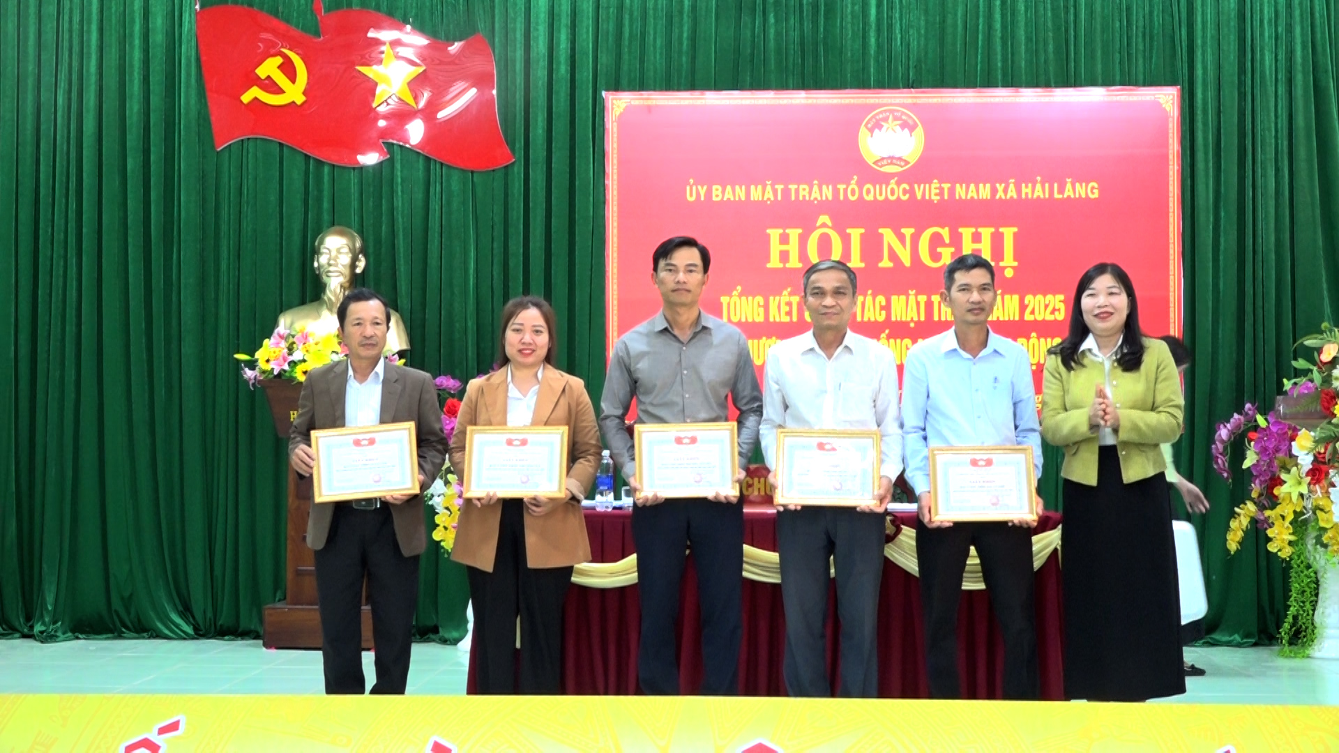 Dịp này, UBMTTQVN xã Hải Lăng đã khen thưởng cho 5 tập thể và 5 cá nhân có thành tích tiêu biểu trong công tác Mặt trận, công tác an sinh xã hội và hoạt động nhân đạo, từ thiện năm 2025.
