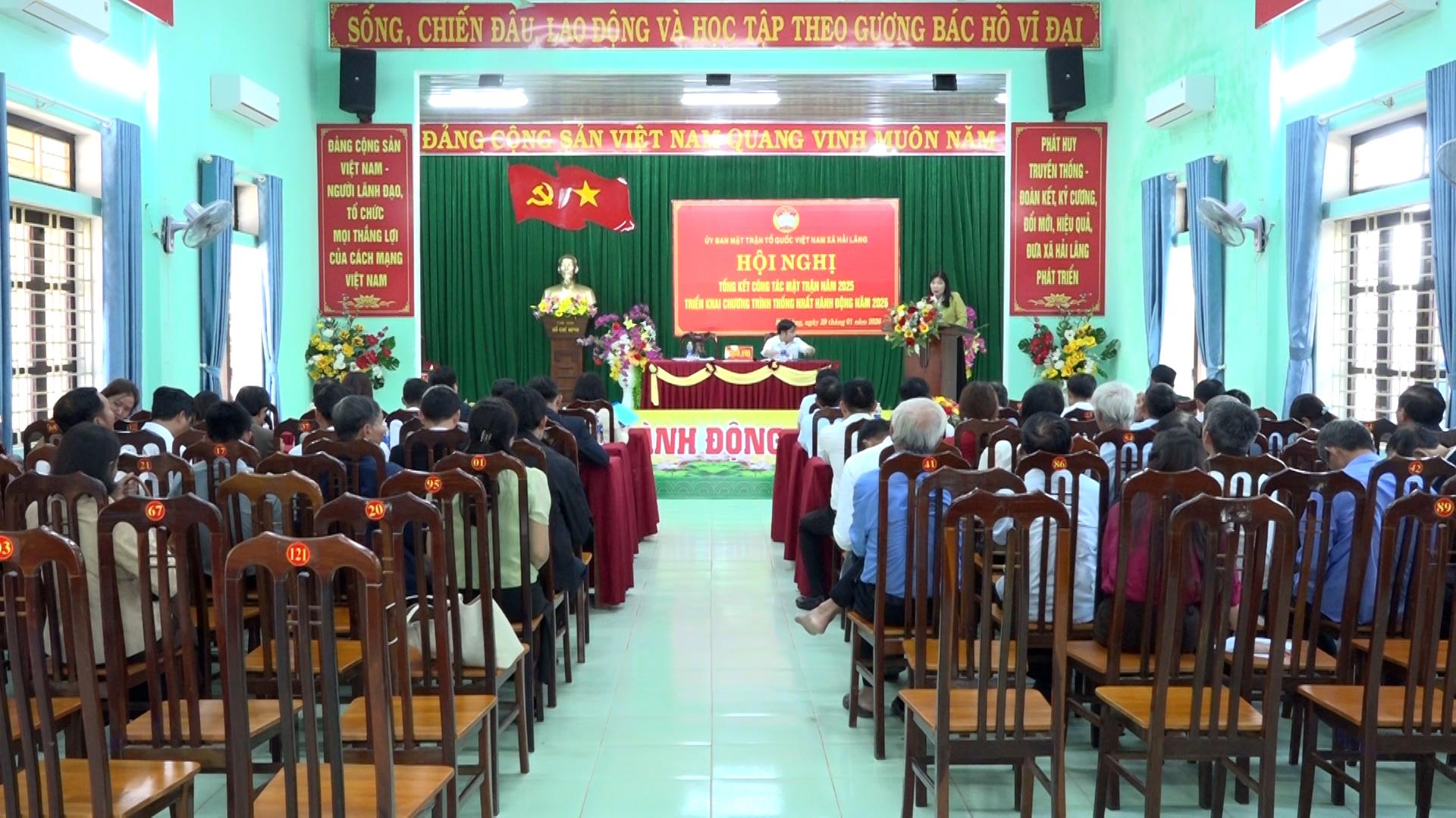 Ngày 29/1, Ủy ban MTTQ Việt Nam xã Hải Lăng tổ chức Hội nghị tổng kết công tác Mặt trận năm 2025, triển khai chương trình thống nhất hành động năm 2026. Tham dự có đồng chí Ngô Thị Thanh – Phó Bí thư Thường trực Đảng uỷ xã; đồng chí Nguyễn Đức Phong – Phó Bí thư Đảng uỷ, Chủ tịch UBND xã cùng 50 vị Uỷ viên Uỷ ban MTTQ Việt Nam xã, đại diện cho Ban Công tác mặt trận thôn trong toàn xã.