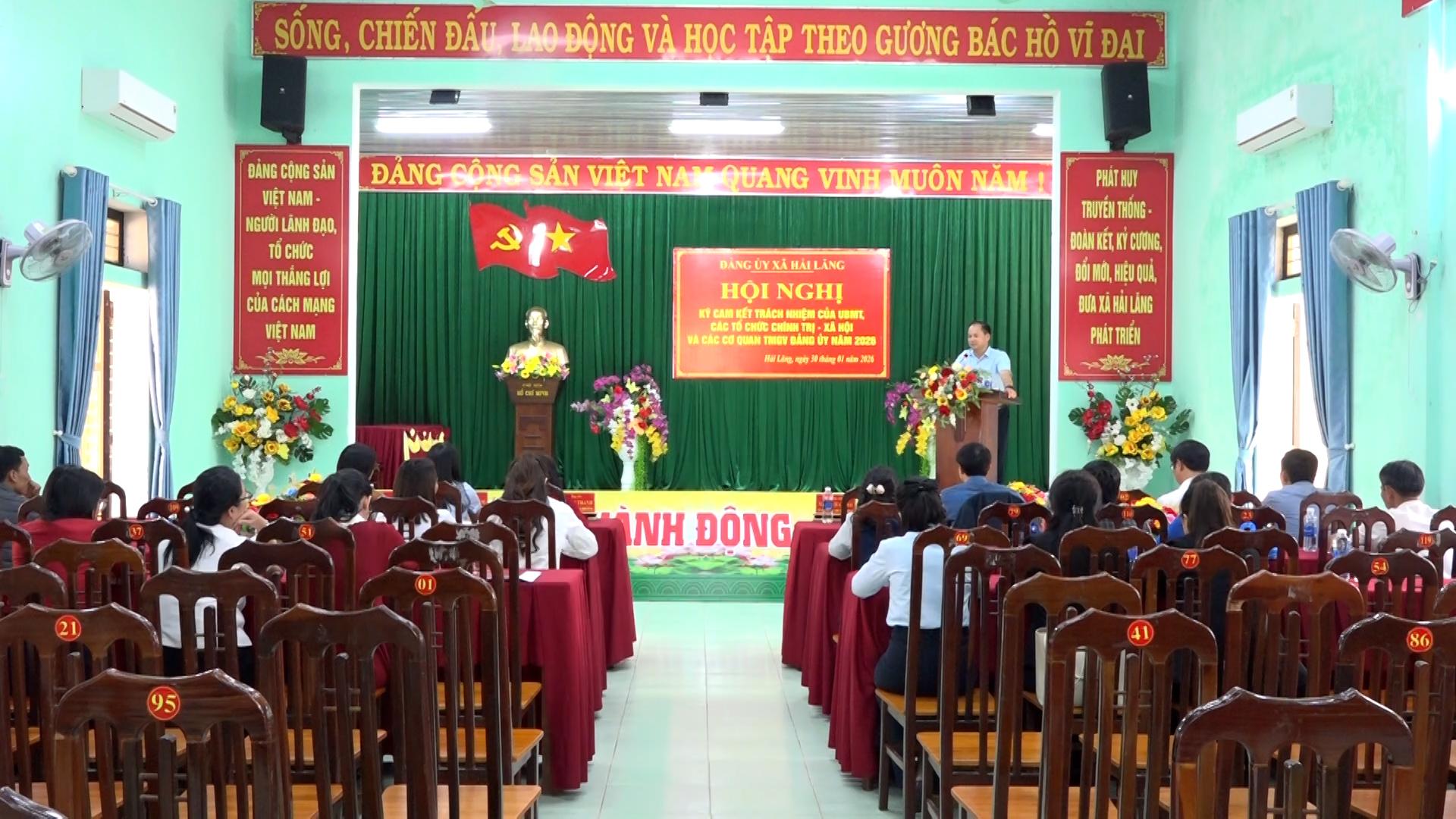 Tại Hội nghị, các tập thể, cá nhân người đứng đầu đã ký cam kết triển khai có hiệu quả các nhiệm vụ tại Nghị quyết số 03-NQ/ĐU ngày 26/12/2025 của Đảng uỷ xã Hải Lăng về phương hướng, nhiệm vụ công tác xây dựng Đảng, phát triển kinh tế - xã hội, đảm bảo quốc phòng – an ninh năm 2026; Chương trình công tác trọng tâm năm 2026 và cam kết hoàn thành một số nội dung cụ thể của từng cơ quan, đơn vị.