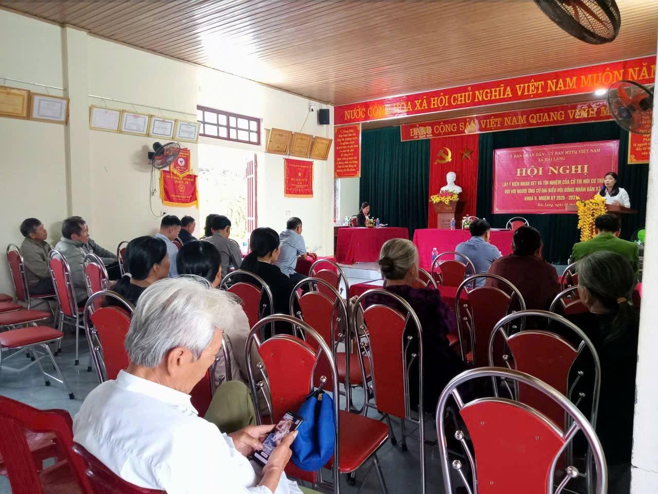 Xã Hải Lăng tổ chức thành công hội nghị lấy ý kiến nhận xét và tín nhiệm của cử tri nơi cư trú đối với người ứng cử đại biểu HĐND các cấp, nhiệm kỳ 2026-2031