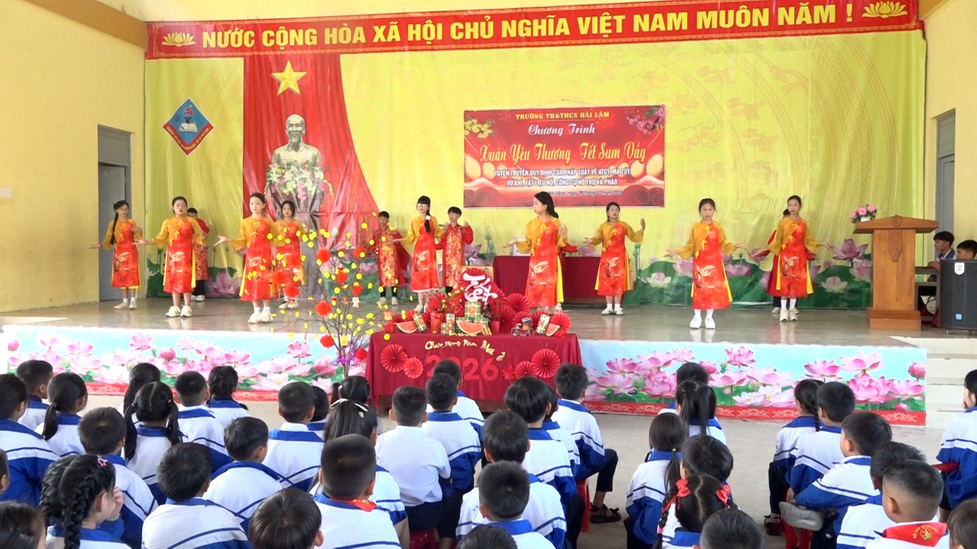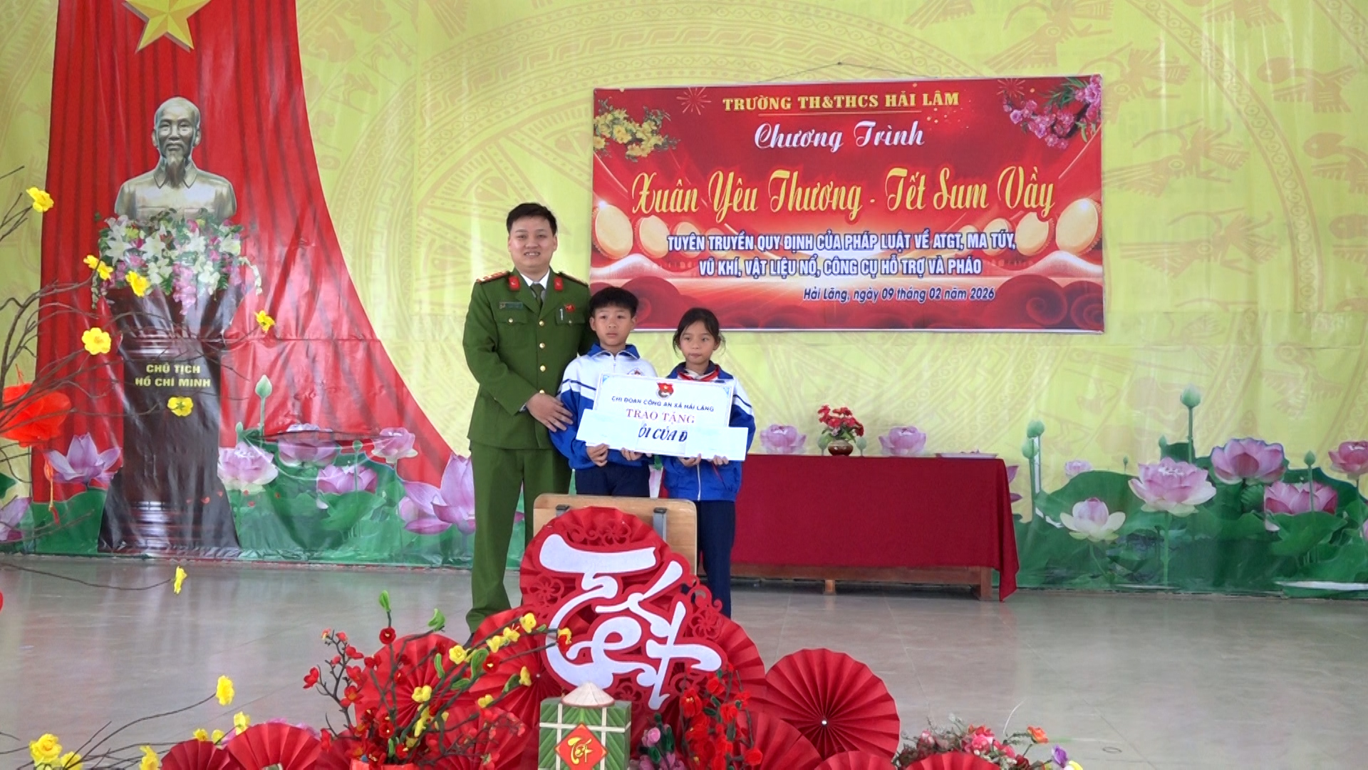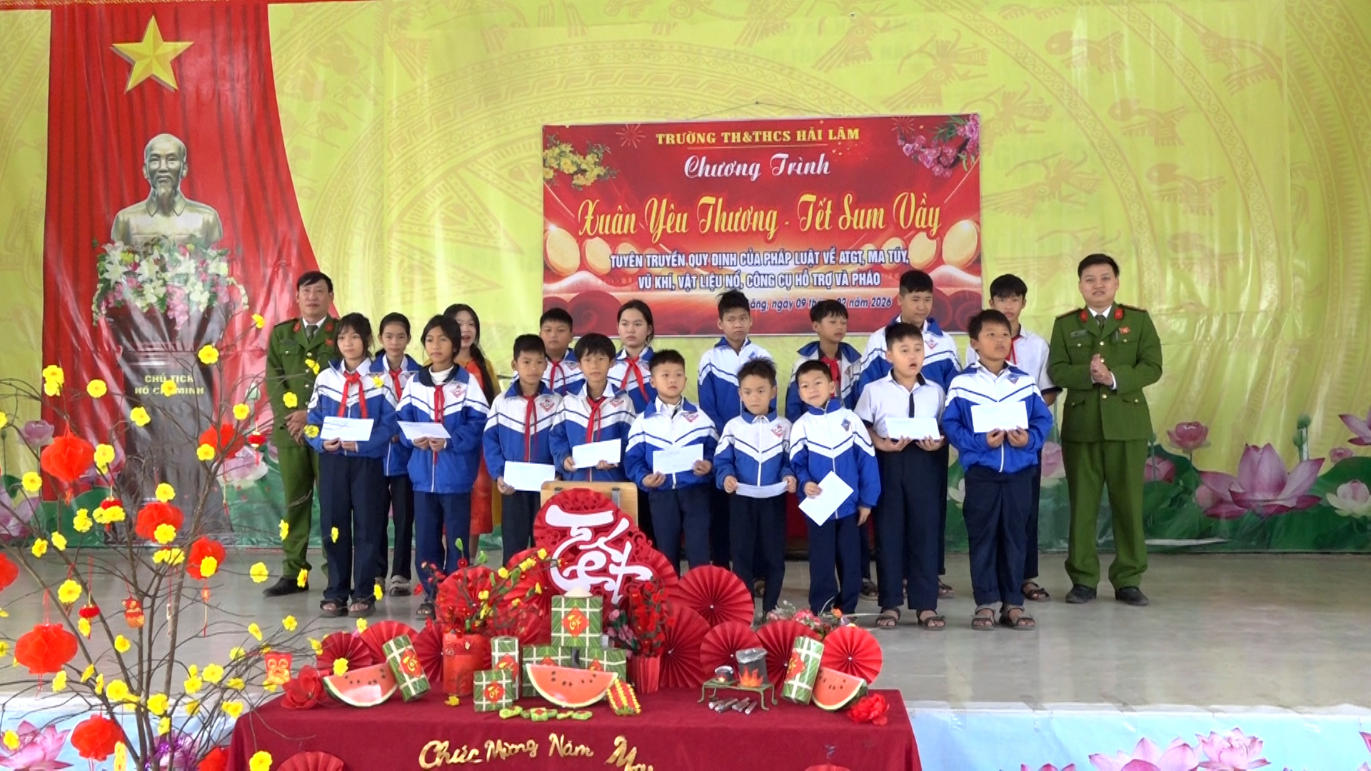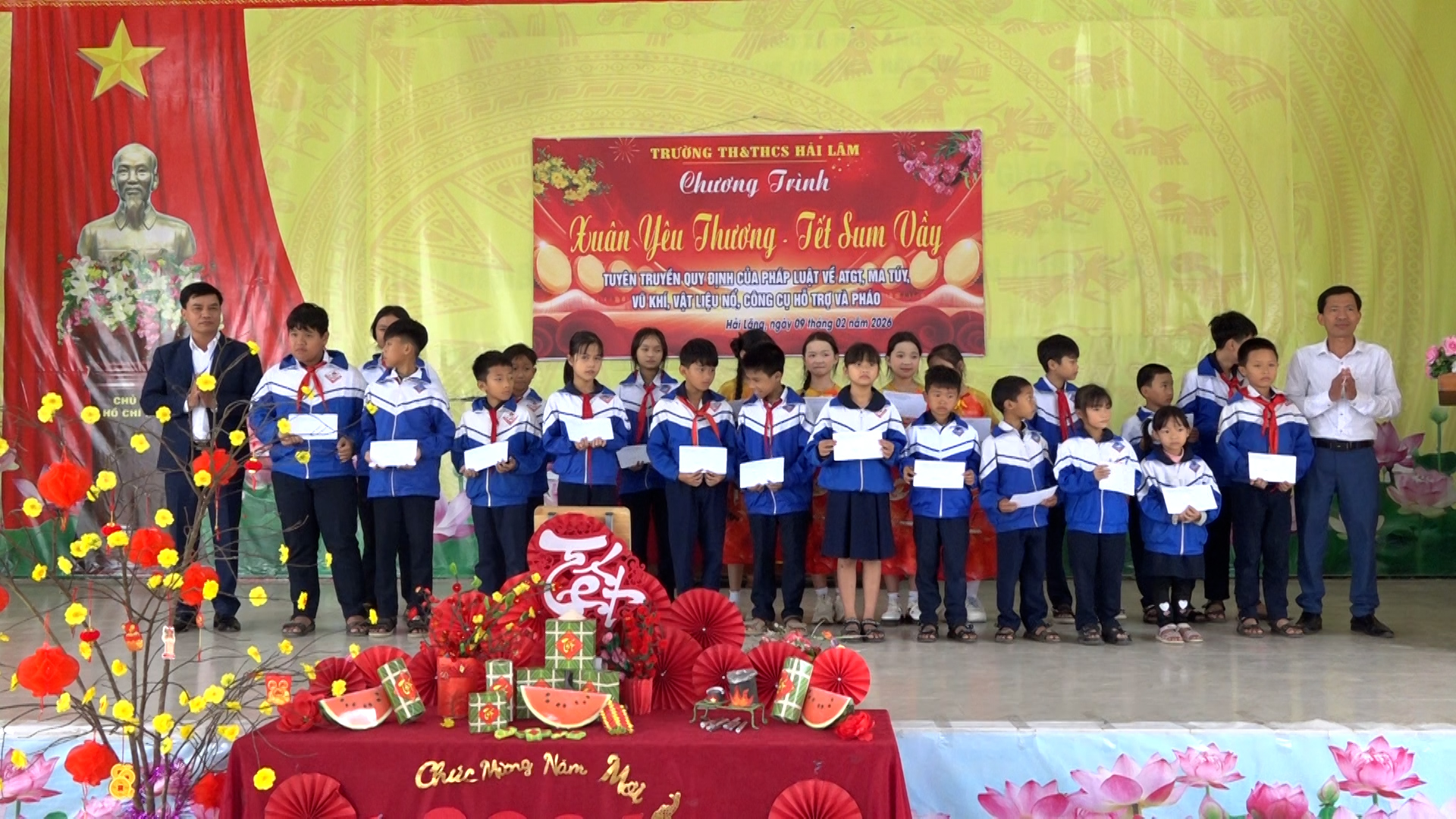 Trong không khí rộn ràng chào đón Tết Nguyên Đán Bính Ngọ 2026, ngày 9/2, Trường TH&THCS Hải Lâm tổ chức chương trình “Xuân yêu thương - Tết sum vầy”, đồng thời tuyên truyền các quy định của pháp luật về ma tuý, vũ khí, vật liệu nổ, công cụ hỗ trợ và pháo cho các em học sinh.