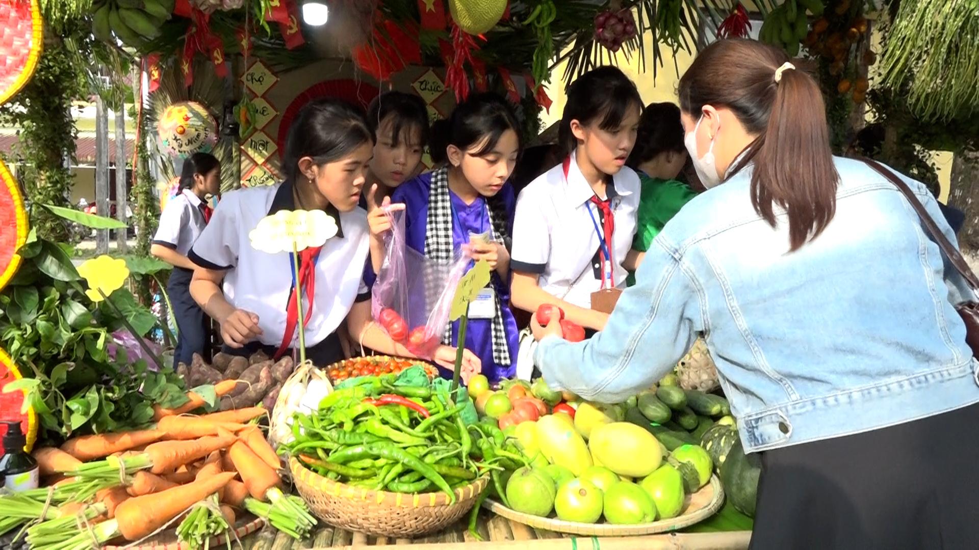 Mở đầu ngày hội, các em học sinh hào hứng tham gia Hội chợ quê, trải nghiệm các hoạt động mua bán các mặt hàng nông sản, các sản phẩm tiêu biểu của địa phương và thưởng thức các món ăn dân dã, mộc mạc. Các gian hàng chợ quê được trang trí đẹp mắt, nhiều mặt hàng phong phú do phụ huynh, giáo viên và học sinh cùng chuẩn bị. Những gian hàng này mang đến hương vị mộc mạc, gần gũi, phản ánh đời sống sinh hoạt và lao động của bà con nhân dân. Không chỉ là nơi vui chơi, hội chợ còn là hoạt động trải nghiệm ý nghĩa giúp các em học sinh hiểu hơn về văn hóa dân tộc, học cách giao tiếp, hợp tác và trân trọng giá trị lao động.