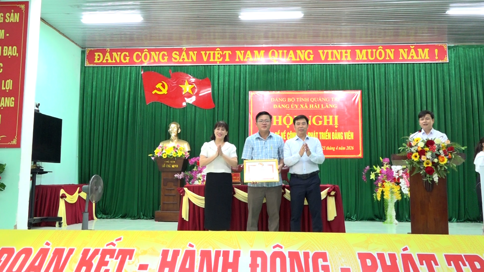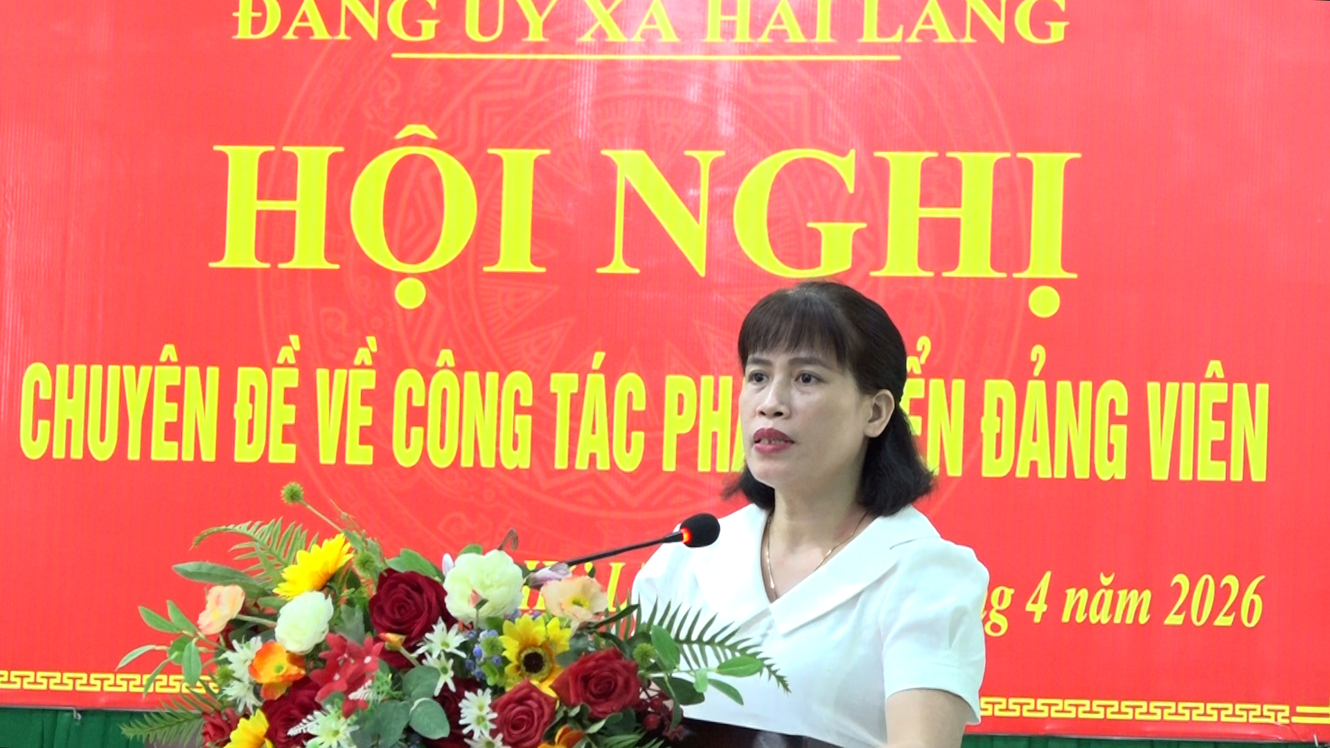 Ngày 23/4/2026, Ban Thường vụ Đảng ủy xã Hải Lăng tổ chức Hội Nghị chuyên đề về công tác phát triển đảng viên. Đồng chí Ngô Thị Thanh – Phó Bí thư Thường trực Đảng uỷ xã và đồng chí Lê Quang Thuận – UVBTV, Trưởng Ban Xây dựng Đảng Đảng uỷ xã đồng chủ trì hội nghị.