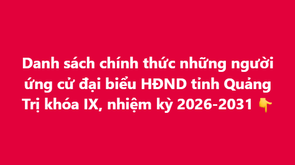 Danh sách chính thức những người ứng cử đại biểu HĐND tỉnh Quảng Trị khóa IX, nhiệm kỳ 2026-2031