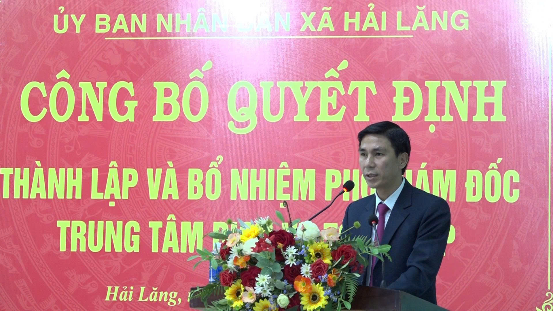 Việc thành lập Trung tâm Dịch vụ tổng hợp xã Hải Lăng không chỉ là sự kế thừa và phát triển mô hình hoạt động của Trung tâm Văn hóa, Thông tin – Thể dục Thể thao cấp huyện trước đây mà còn mở rộng chức năng, nhiệm vụ thực hiện dịch vụ công cơ bản thiết yếu theo hướng đa ngành, đa lĩnh vực như: Văn hoá, Thể thao, Truyền thông; Khuyến nông, khuyến công và một số lĩnh vực khác. Hội nghị cũng đã công bố Quyết định bổ nhiệm viên chức quản lý Trung tâm và Quyết định tiếp nhận viên chức. Ông Tạ Quang Giang được bổ nhiệm giữ chức Phó Giám đốc phụ trách Trung tâm.