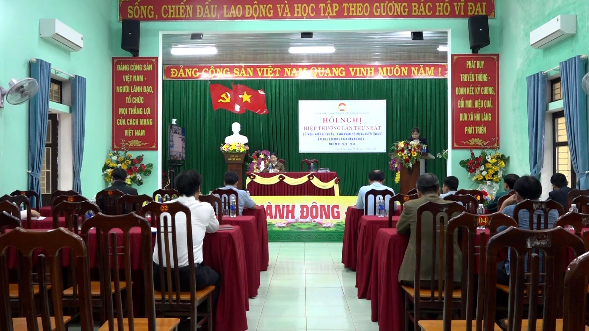 Ngày 9/12, Ủy ban MTTQ Việt Nam xã Hải Lăng tổ chức Hội nghị hiệp thương lần thứ nhất nhằm thảo luận về cơ cấu, thành phần, số lượng người được giới thiệu ứng cử đại biểu Hội đồng nhân dân xã khóa II, nhiệm kỳ 2026–2031.