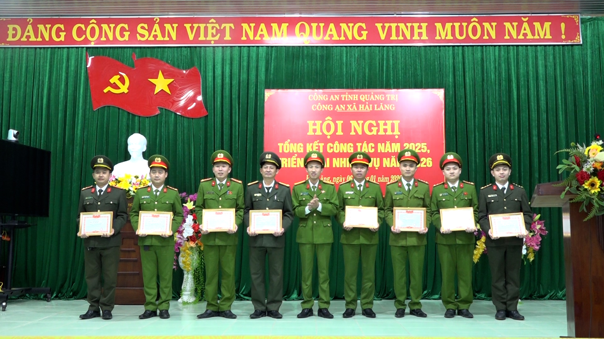 Tại Hội nghị, thừa uỷ quyền của đồng chí Giám đốc Công an tỉnh, Công an xã Hải Lăng đã tiến hành trao danh hiệu “Chiến sĩ thi đua cơ sở” trong phong trào thi đua “Vì an ninh Tổ quốc” năm 2025 cho 10 cá nhân của Công an xã.
