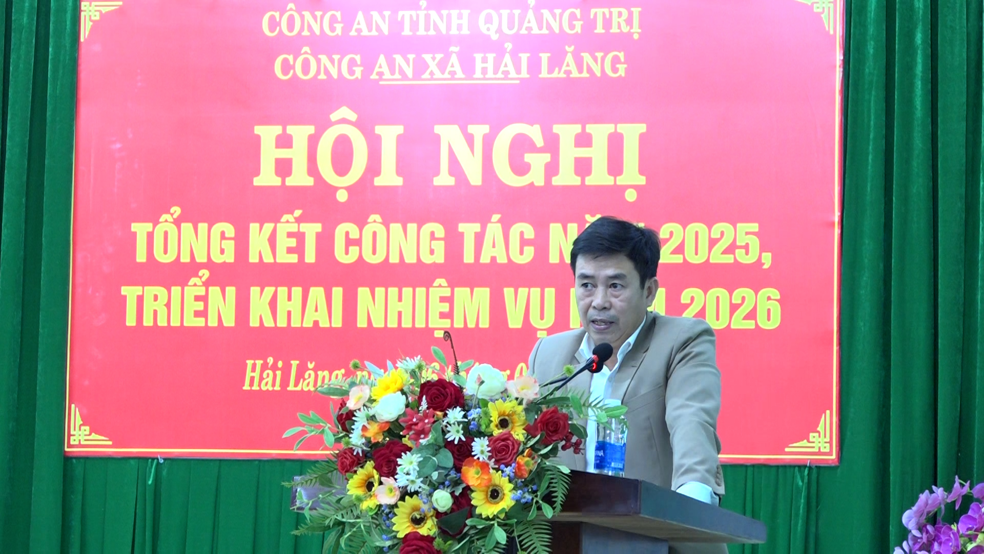 Ngày 06/01/2026, Công an xã Hải Lăng tổ chức Hội nghị tổng kết công tác năm 2025, triển khai nhiệm vụ năm 2026. Tham dự hội nghị có đồng chí Nguyễn Quang Hải - Bí thư Đảng uỷ, Chủ tịch HĐND xã, đồng chí Nguyễn Đức Phong - Phó Bí thư Đảng uỷ, Chủ tịch UBND xã, đồng chí Thượng tá Nguyễn Năng Đơn - Chi hội trưởng Chi hội Cựu CAND xã, đại diện các cơ quan, đơn vị, Tổ trưởng các Tổ bảo vệ ANTT trên địa bàn xã.