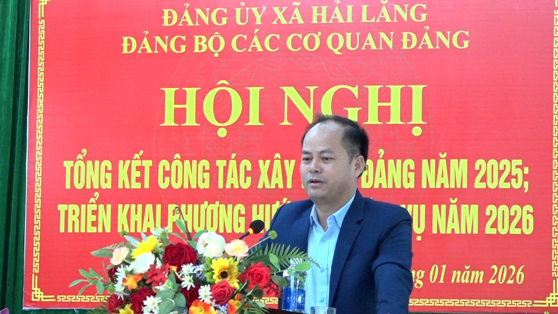 Phát biểu tại hội nghị, đồng chí Nguyễn Quang Hải - Bí thư Đảng uỷ, Chủ tịch HĐND xã ghi nhận, biểu dương những kết quả mà Đảng bộ các cơ quan Đảng xã Hải Lăng đã đạt được trong năm 2025. Đồng thời, đồng chí đề nghị trong thời gian tới tiếp tục nâng cao chất lượng sinh hoạt Chi bộ, đổi mới nội dung, hình thức sinh hoạt; tăng cường kỷ luật, kỷ cương hành chính; đẩy mạnh cải cách hành chính, chuyển đổi số, chỉnh trang nông thôn mới, tăng cường công tác tuyên truyền, vận động cán bộ, đảng viên và nhân dân thực hiện tốt các mô hình “Dân vận khéo”.