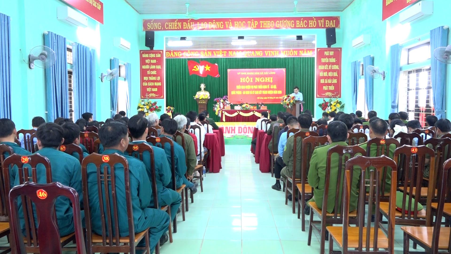Phát biểu chỉ đạo hội nghị, đồng chí Nguyễn Quang Hải – Bí thư Đảng uỷ, Chủ tịch HĐND xã ghi nhận và biểu dương những nỗ lực của cấp ủy, chính quyền, các ngành, đoàn thể và Nhân dân trong toàn xã. Đồng thời nhấn mạnh, năm 2026 có ý nghĩa quan trọng, tạo nền tảng thực hiện thắng lợi Nghị quyết Đại hội Đảng bộ xã nhiệm kỳ 2025–2030, vì vậy đề nghị xã tiếp tục phát huy tinh thần đoàn kết, tập trunng phát triển kinh tế gắn với xây dựng NTM, quan tâm phát triển Nông nghiệp, Công nghiệp, Tiểu thủ công nghiệp, thương mại - dịch vụ; Hoàn thành công tác quy hoạch chung của xã, tăng cường quản lý quy hoạch, đất đai và xây dựng; Thực hiện đầy đủ, kịp thời, trách nhiệm công tác an sinh xã hội, chăm lo cho người có công với cách mạng, giúp đỡ hộ nghèo, cận nghèo, trẻ em, gia đình có hoàn cảnh khó khăn, k để ai bị bỏ lại phía sau. Công tác quốc phòng – an ninh tiếp tục thực hiện tốt, tham gia với các thôn chỉnh trang xây dựng NTM, đảm bảo ANTT, tăng cường quản lý chặt chẽ các đối tượng ma tuý, tội phạm. công nghệ mạng trên địa bàn, phối hợp với Mặt trận đoàn thể phát động các phong trào bảo vệ ANTQ. Đặc biệt, tuyên truyền với cán bộ, đảng viên và nhân dân hưởng ứng tham gia tích cực, trách nhiệm đối với công tác bầu cử Đại biểu quốc hội khoá XVI và HĐND các cấp nhiệm kỳ 2026-2031.