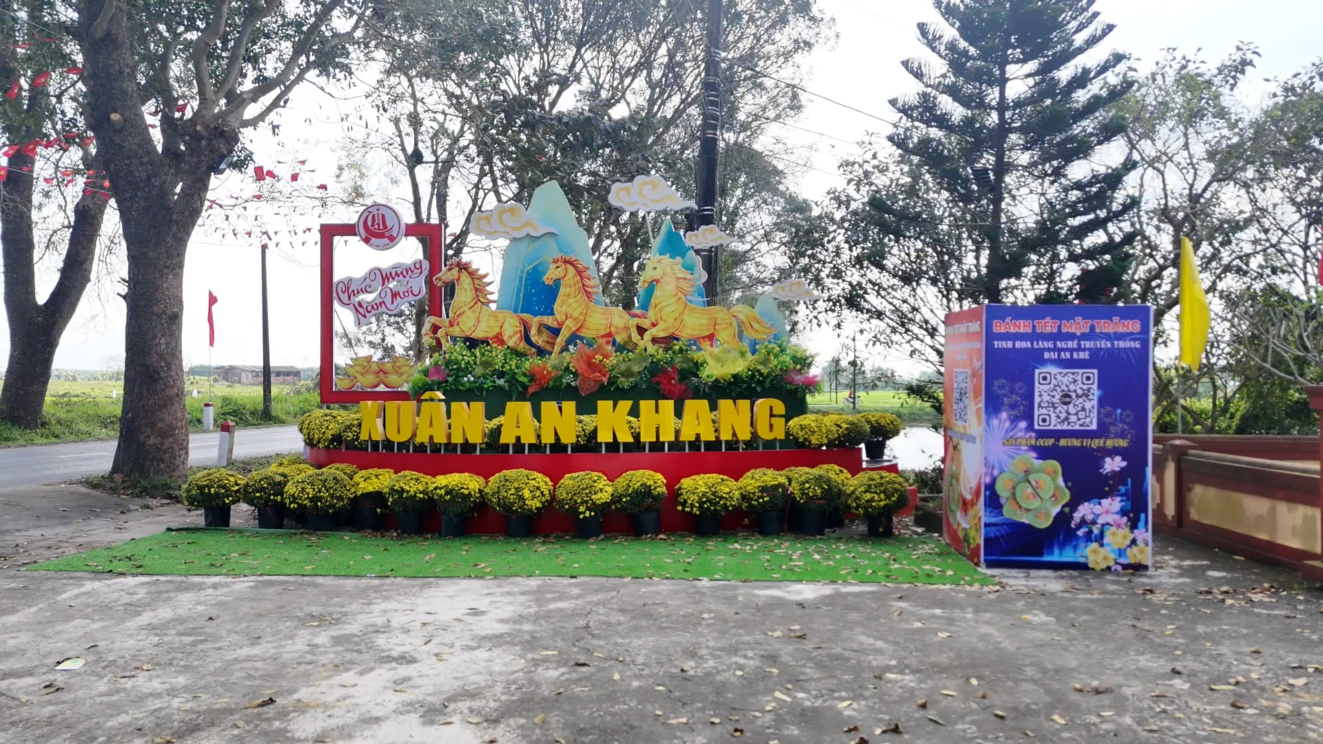 Điểm check-in Xuân Bính Ngọ 2026 của xã Hải Lăng kèm pano giới thiệu sản phẩm OCOP địa phương