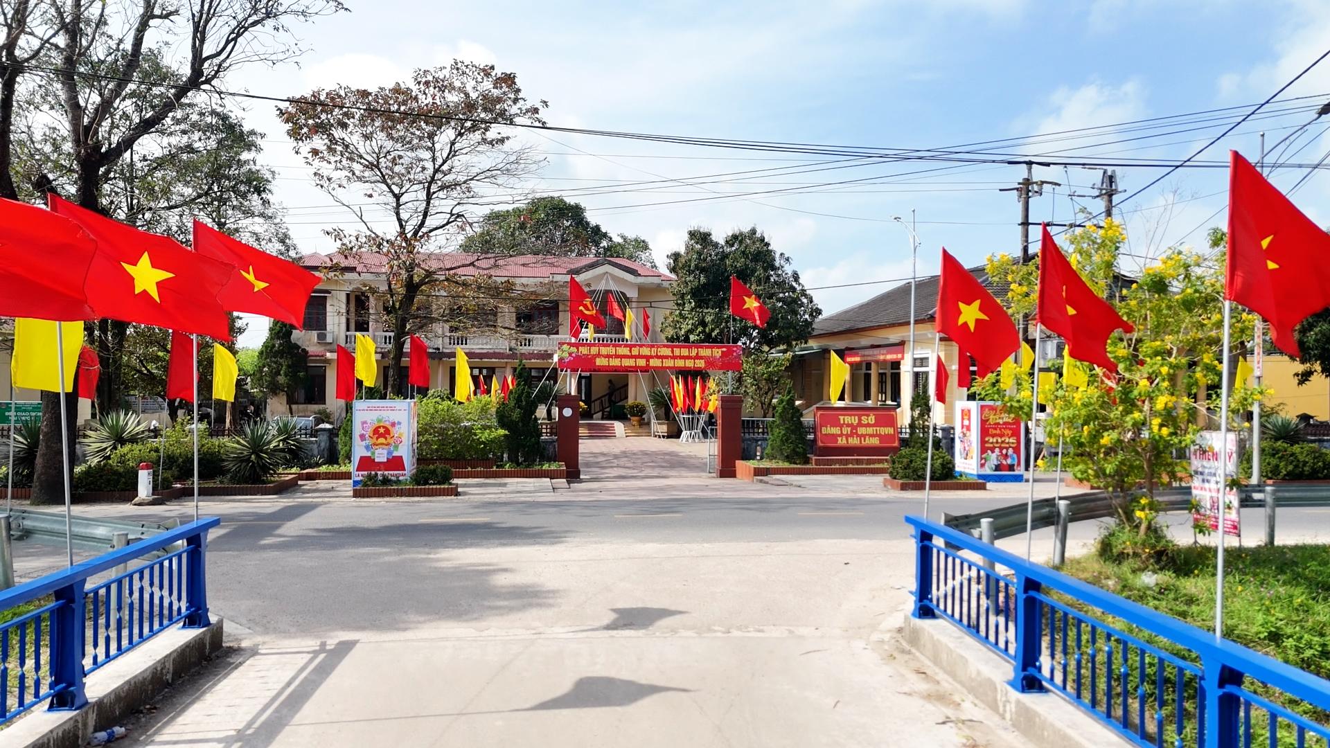 Trụ sở Đảng uỷ xã Hải Lăng được trang trí rực rỡ